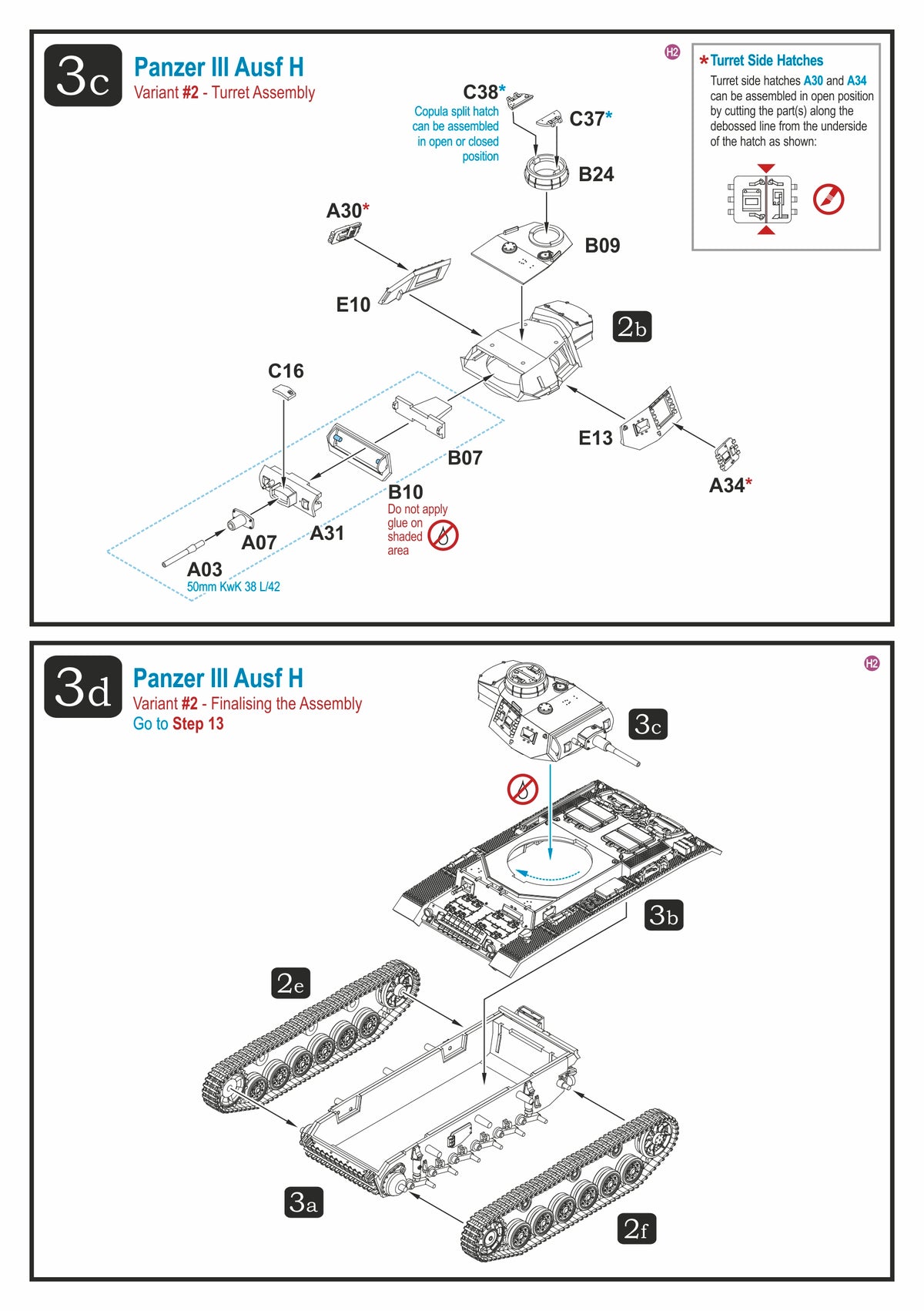 Die Ausf. H war die erste Version, die entworfen und mit einer 5-cm-Kanone KwK 38 L/42 ausgestattet wurde. Diese Varianten waren auch stärker gepanzert. Die Auslieferung begann Ende 1940 und Anfang 1941. Panzer, die nach Nordafrika gingen, waren mit gepanzerten Entlüftungsöffnungen auf dem Motordeck ausgestattet. Staufächer im hinteren Turm wurden später eingebaut. Aufgrund der Gewichtszunahme wurden breitere Räder und Ketten eingeführt. Neue vordere Antriebsräder und hintere Leiträder sowie ein anderer Stoßdämpfer wurden eingebaut. Aufgrund von Versorgungsproblemen wurden einige der frühen Panzer der Ausf. H mit Stoßdämpfern und Rädern ausgestattet, die bei der Ausf. G verwendet wurden.