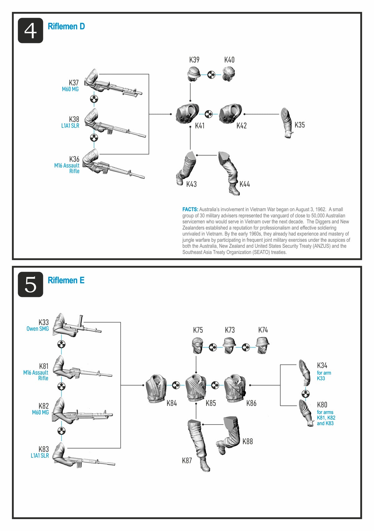 During the Vietnam War two companies from the Royal New Zealand Infantry Regiment were integrated into Royal Australian Regiment battalions.