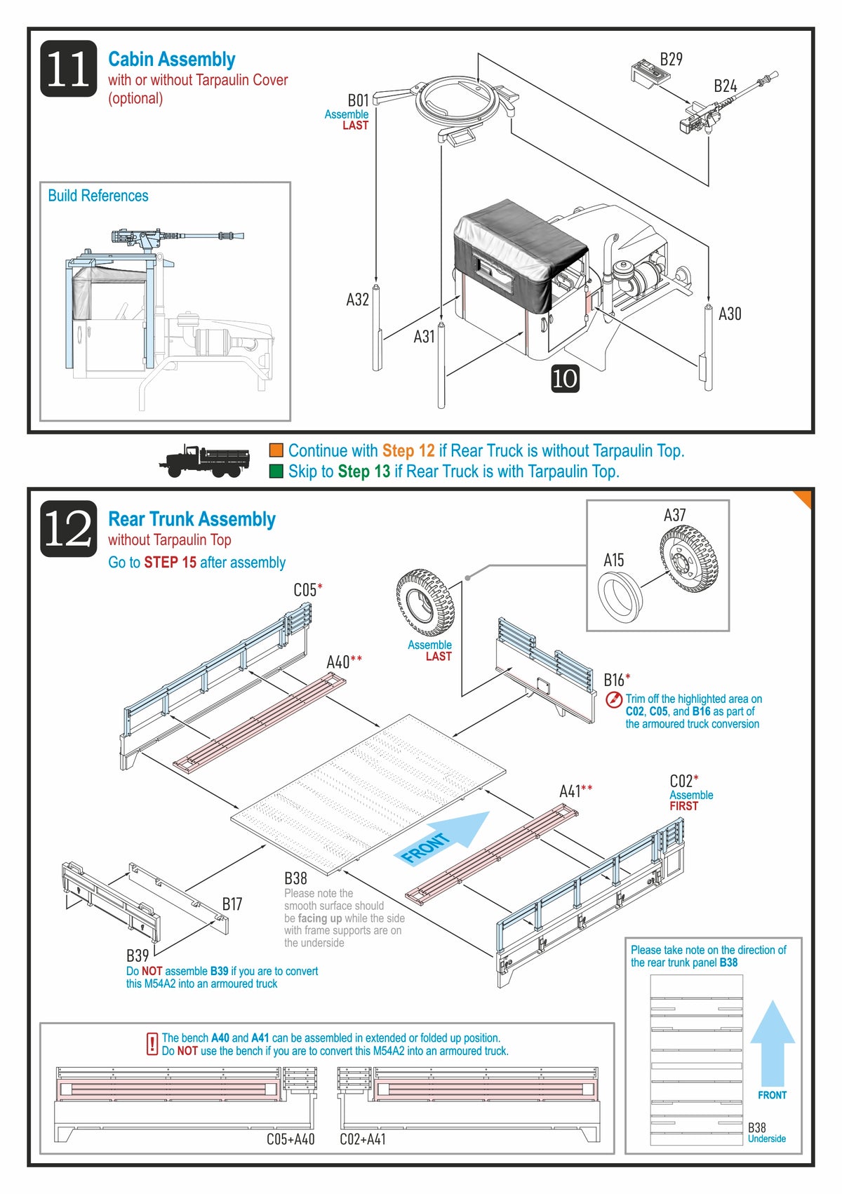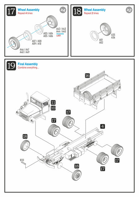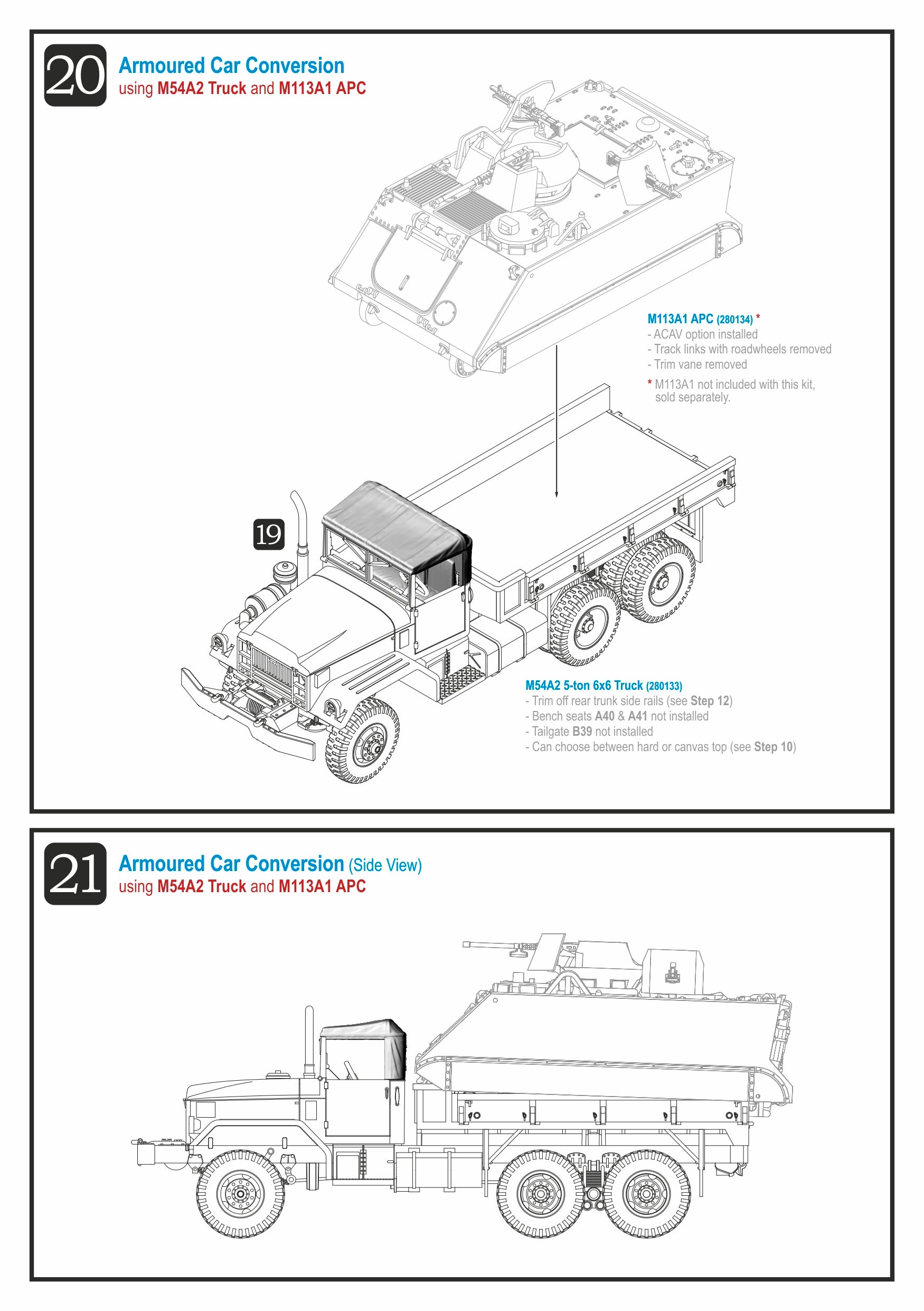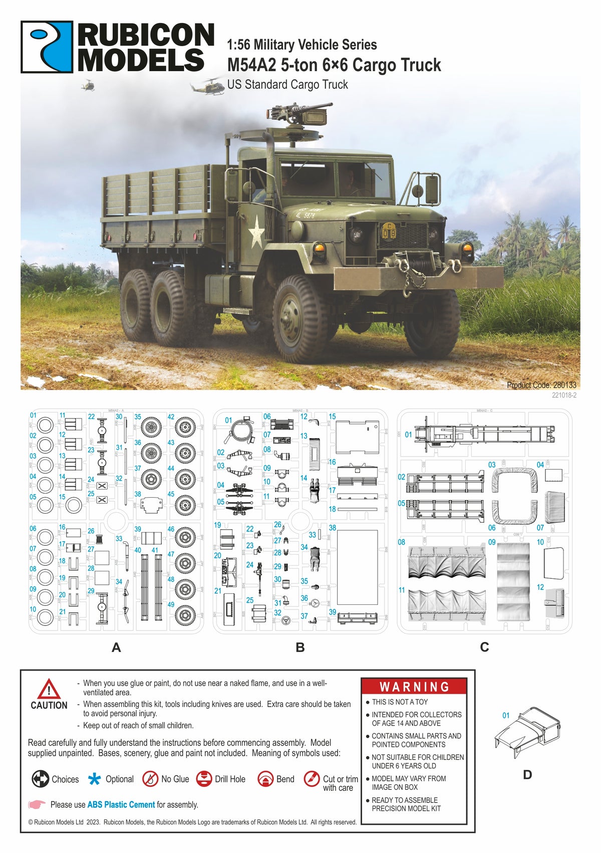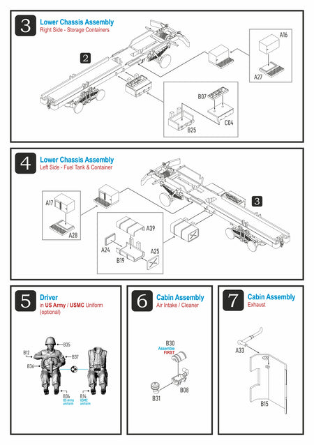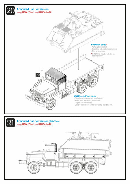 The M39 series was the primary heavy truck of the US Army and USMC forces during the Vietnam War, and was also used by the US Navy, US Air Force, and ARVN forces. The M54 was the standard cargo version of the series. This kit comes with optional driver, cabin canvas or hard top, M2HB HMG with ring mount, seat bench, and rear trunk tarpaulin top; also with open or closed tailgate.