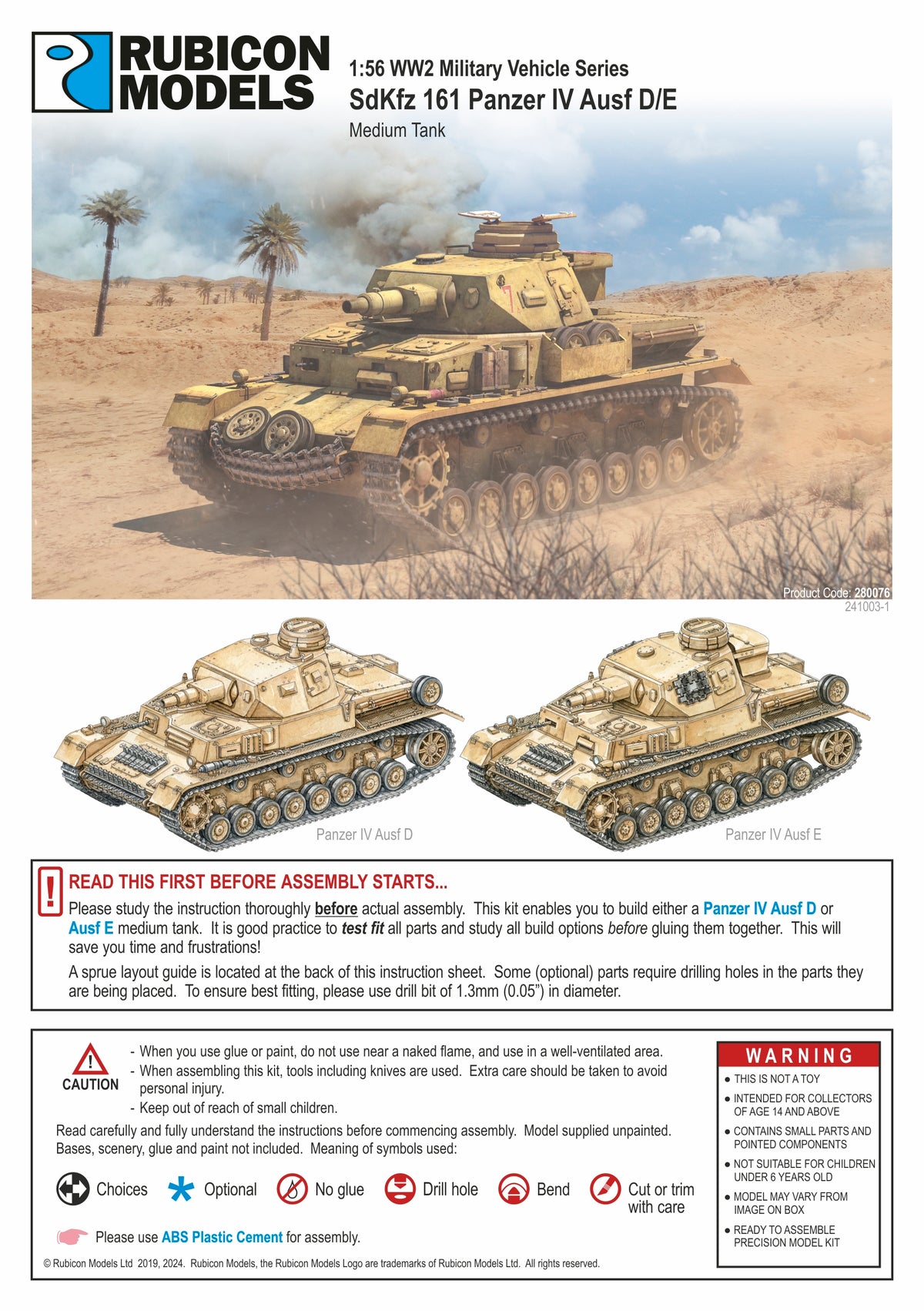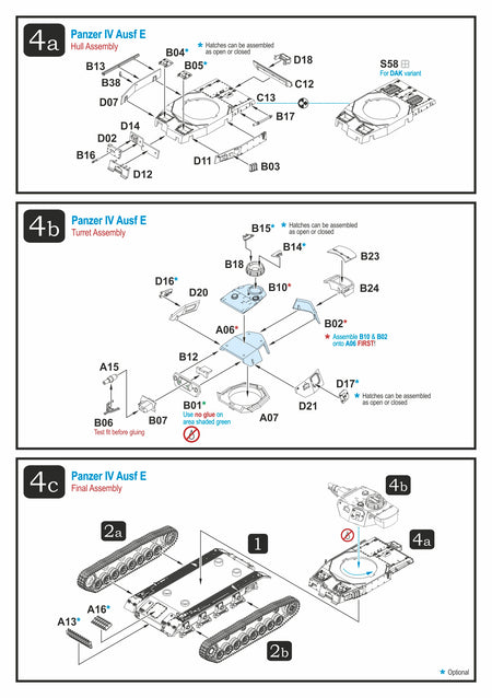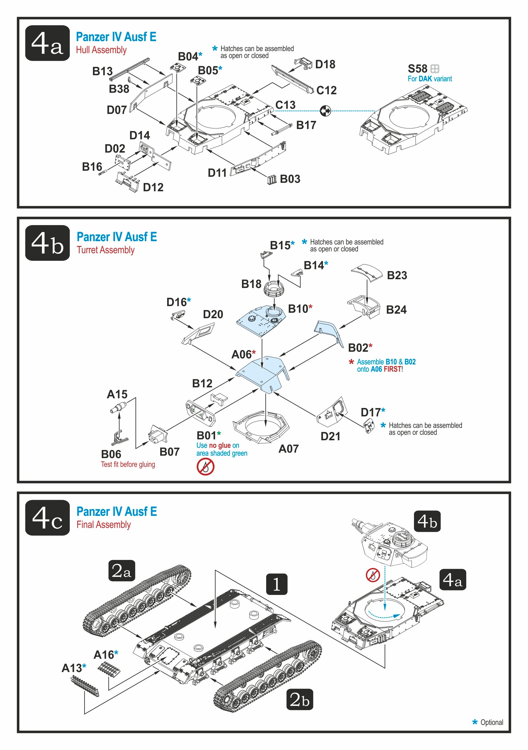 En octobre 1940, l'Ausf E fut introduit. Celui-ci avait 30 mm de blindage sur la plaque de proue ; tandis qu'une plaque d'acier appliquée de 30 mm a été ajoutée au glacis à titre provisoire. Une nouvelle visière conducteur, inspirée du Sturmgeschütz III, a été installée sur la plaque avant de la coque. Une nouvelle coupole de commandant, adoptée à partir du Panzer III Ausf G, a été déplacée vers l'avant sur la tourelle, éliminant le renflement sous la coupole. Les anciens modèles de chars Panzer IV ont été équipés de ces caractéristiques lorsqu'ils sont retournés au fabricant pour entretien. Au total, 206 Ausf Es furent produits entre octobre 1940 et avril 1941.
