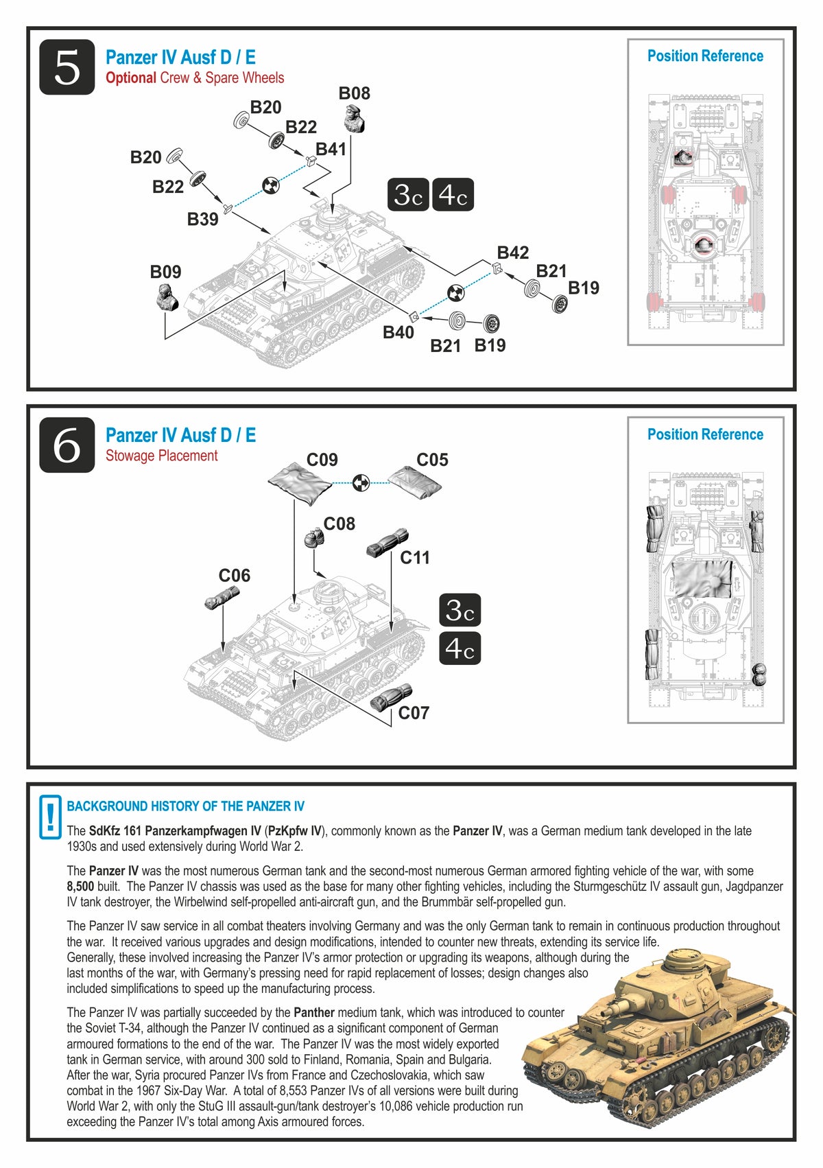 Le SdKfz 161 Panzerkampfwagen IV (PzKpfw IV), communément appelé Panzer IV, était un char moyen allemand développé à la fin des années 1930 et largement utilisé pendant la Seconde Guerre mondiale. Le Panzer IV était le char allemand le plus nombreux et le deuxième véhicule blindé de combat allemand le plus nombreux de la guerre avec plus de 8 500 exemplaires construits. Le châssis du Panzer IV a servi de base à de nombreux autres véhicules de combat, notamment le canon d'assaut Sturmgeschütz IV, le chasseur de chars Jagdpanzer IV, le canon antiaérien automoteur Wirbelwind et le canon automoteur Brummbär.