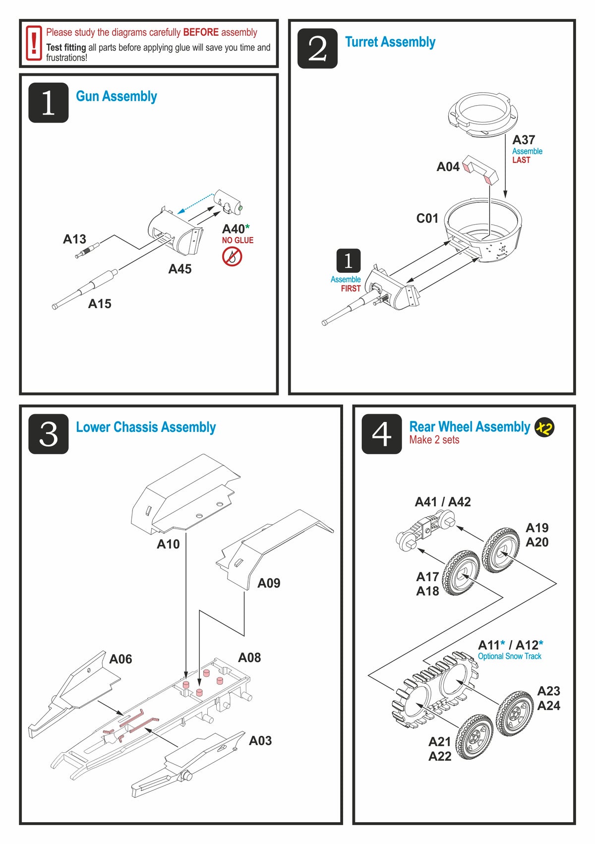 Nombre de pièces : 50 pièces / 1 grappe + 1 corps de cabine + 1 tourelle
