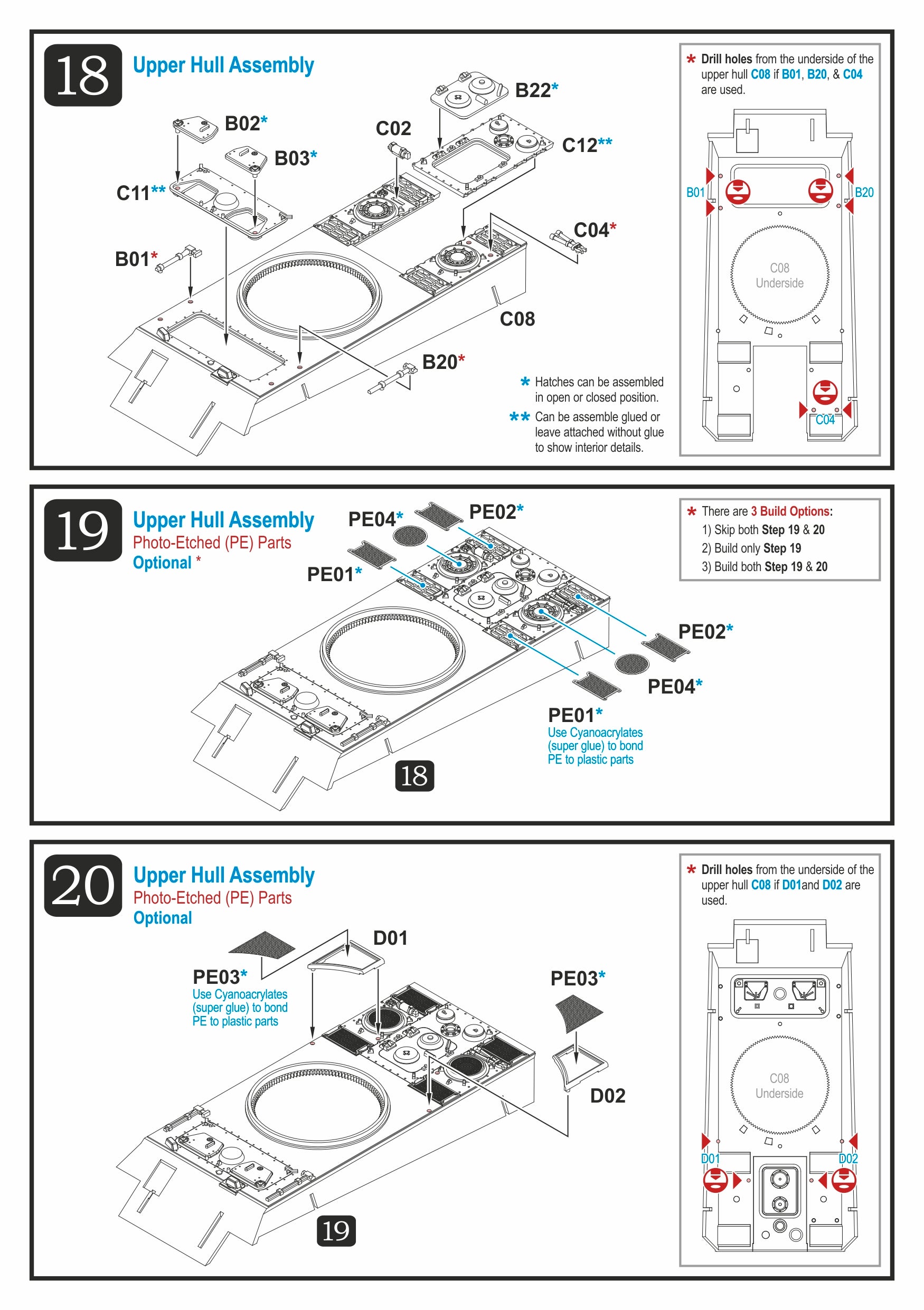 Open or closed command and crew hatches