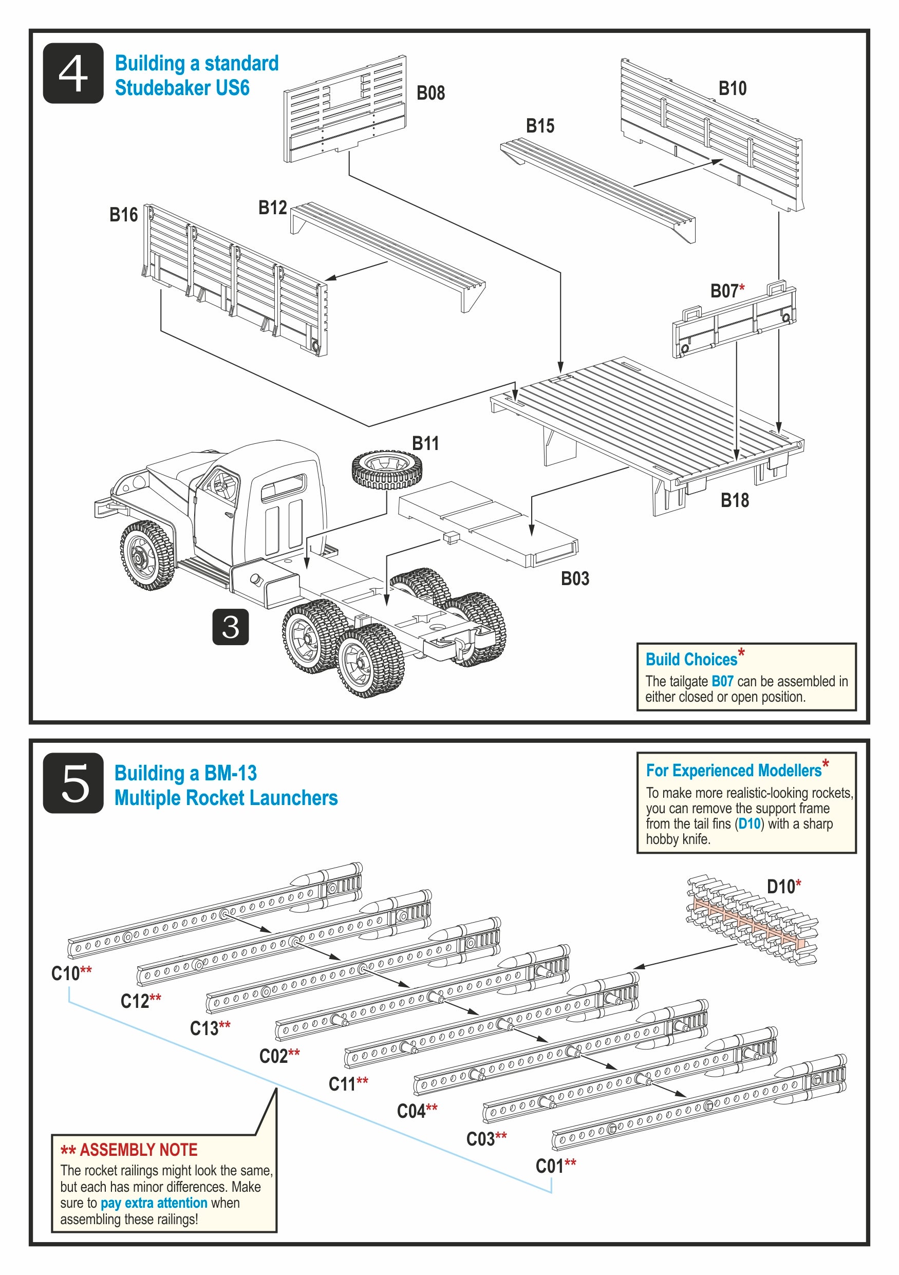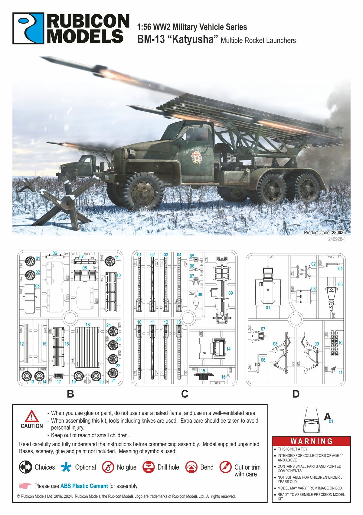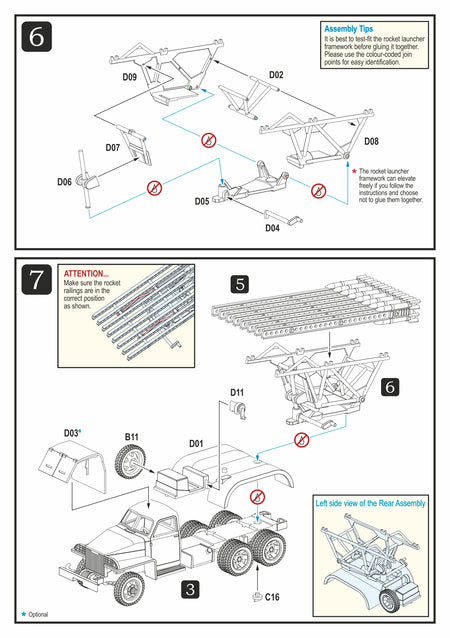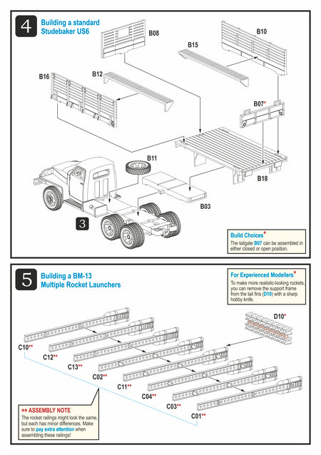 This highly detailed plastic kit depicts a BM-13N Katyusha, comprising a Studebaker US6 6x6 truck with a rotating and elevating rocket launcher.
