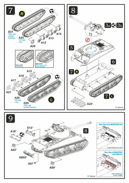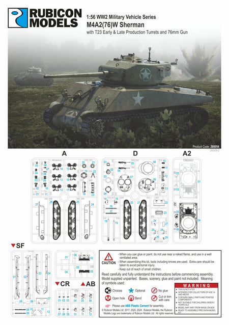 The M4A2(76)W was not an important Sherman in the west during WWII. Just about the whole production run was shipped off to the Soviet Union, where it was well received. The M4A2(76)W was a wet tank with large hatches from the beginning. It’s 76mm T23 turret was the same as the ones installed on all the other 76 tanks, and probably went through the same series of minor changes. The hull is almost indiscernible from a M4A3(76)W. A total of 1,594 M4A2(76)W was manufactured between May 44 and Dec 44. From Jan 45, production was switched to M4A2(76)W HVSS; a total of 1,321 was manufactured until May 45. The Russians received some M4A2(76)W HVSS tanks before the war ended.